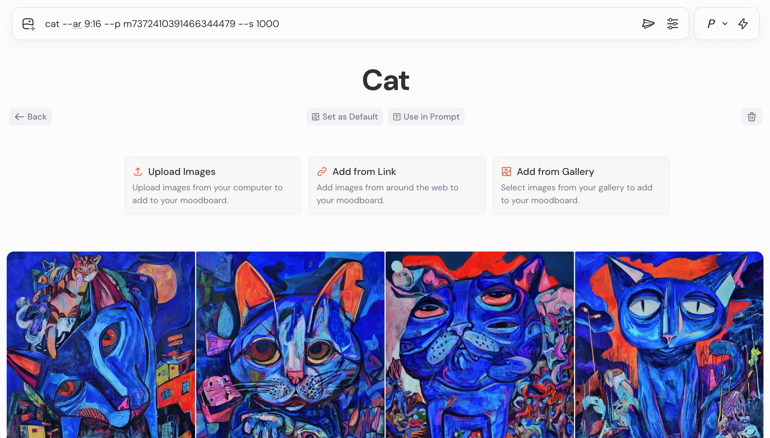 Moodboards are a step bigger. Instead of pulling style from one or two images and blending them into one look, you give Midjourney a curated collection.